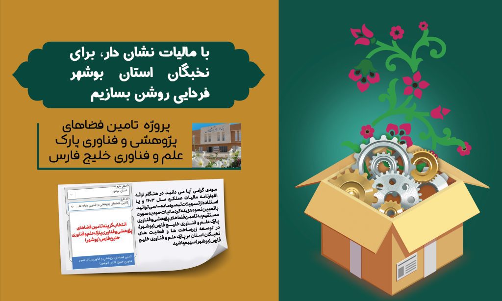 اختصاص مالیات مودیان به «طرح تامین فضاهای پژوهشی و فناوری استان بوشهر» در قالب طرح نشاندار کردن مالیاتها